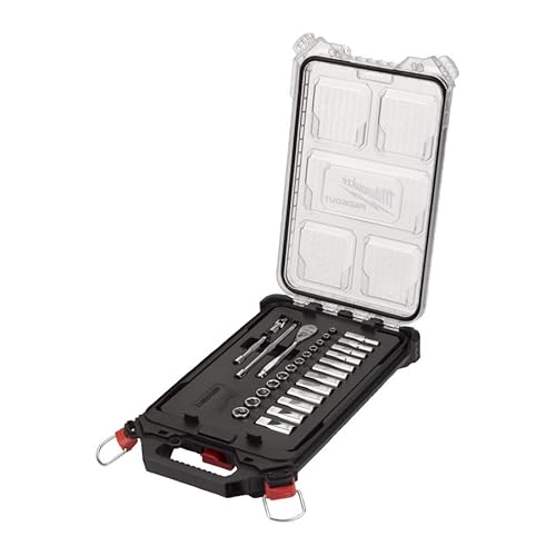 Milwaukee Set di inserti a cricchetto e chiave, 1/4", 28 pezzi, in organizer compatto PACKOUT Slim