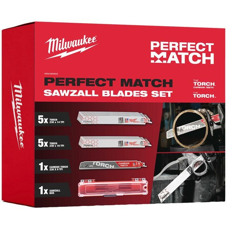 Sawzall set lame per sega a gattuccio Include: - 1 lama 230 mm Torch Carbide - 1 confezione 5 lame 230 mm Torch BiMetallica 14 TPI - 1 confezione 5 lame 230 mm Torch BiMetallica 18 TPI - 1 portalame Confezioni di imballo: 1