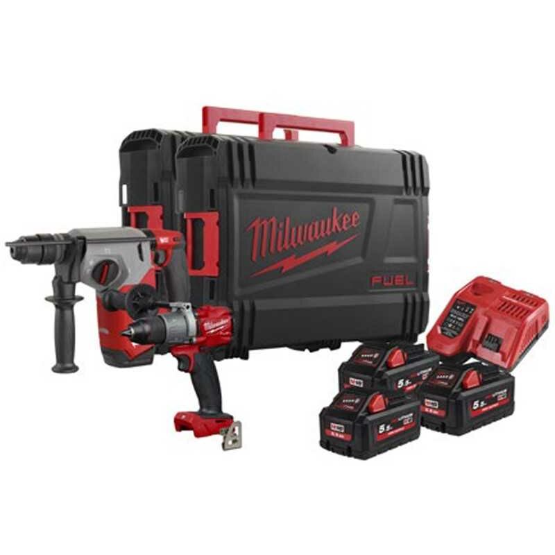 Kit M18 FUEL Trapano a percussione FP2 con Tassellatore FHX Il kit contiene: 1 Trapano avvitatore FP2-0X 18V codice 4933464263 1 Tassellatore FHX 2.5J 18V codice 4933478888 3 Batterie 5.5Ah 18V REDLITHIUM codice 4932464712 1 Caricabatterie rapido REDLITHIUM M12-18 codice 4932451079 2 Valigette Heavy Duty