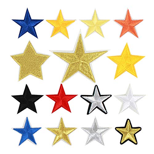 Milya 15 in 1 Toppa da Cucire o Stirare con Ferro da Stiro su Toppa, Applicazione a Forma di Stella a 5 Angoli, Modello da 15 per t-Shirt, Jeans, Abiti, Borse, Verschiedene Größen