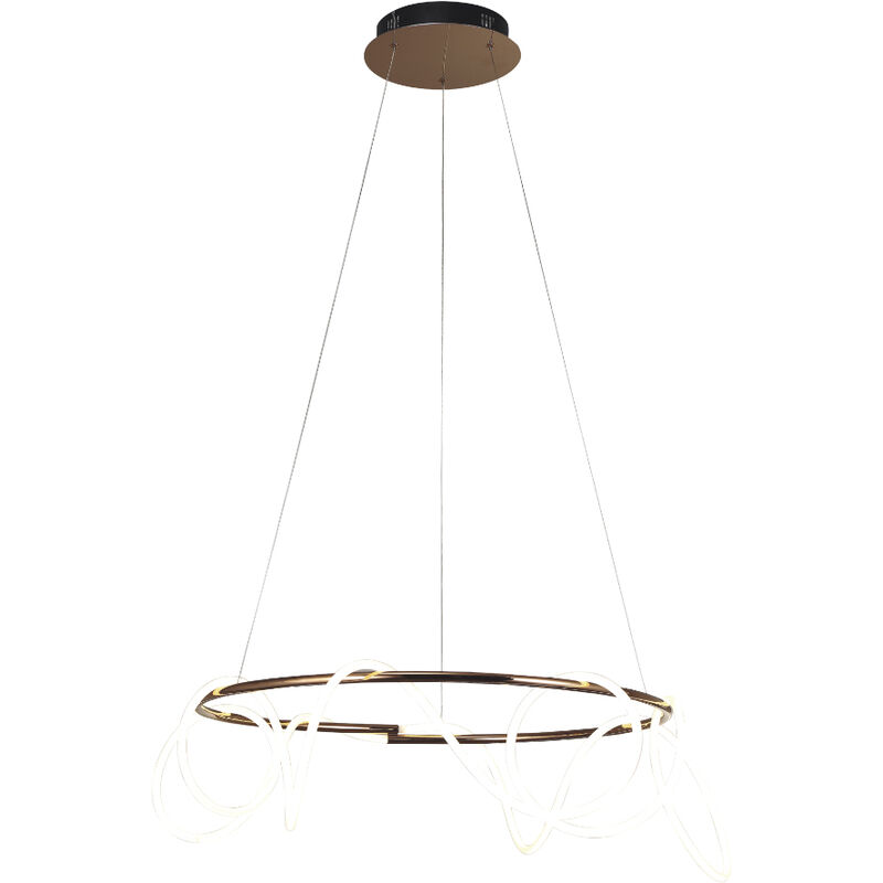 Collezione Neonika LAMPADA DI DESIGN Lampada a sospensione LED con struttura minimalista in alluminio oro rosa opaco disegnata a forma di anello. La pretesa principale è il suo originale diffusore in silicone che è sospeso attorno alla struttura della lampada. Lampada da soffitto dal grande potere decorativo per l'illuminazione di interni. Sorgente luminosa a Led da 80 watt, ottima resa luminosa 3750 lumen, temperatura colore 3000k (luce calda).