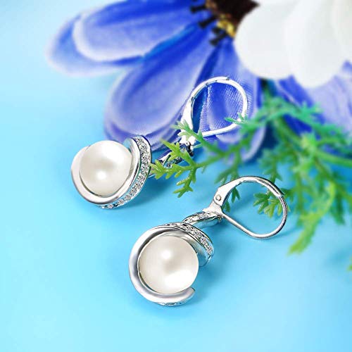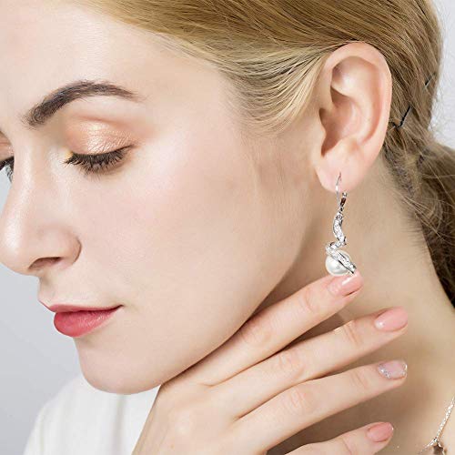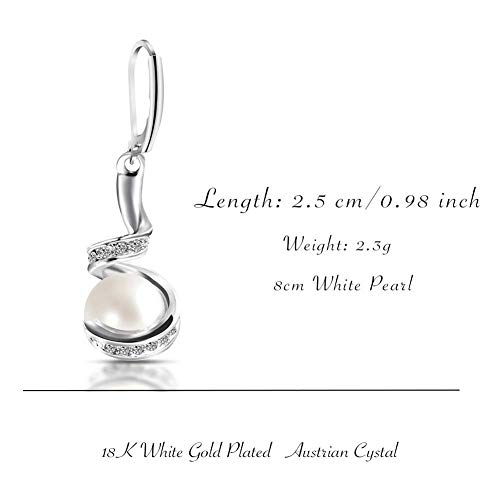 Mimei Orecchini Pendenti Donna Placcati Oro Bianco 18kt con Perle, Orecchini Donna Argento Pendenti Regalo Mamma/Donna Natale Compleanno
