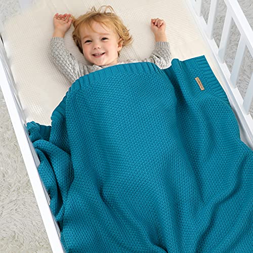 Mimixiong Coperta bimbo in maglia per bambini, 100 x 80 cm(Blu verde)