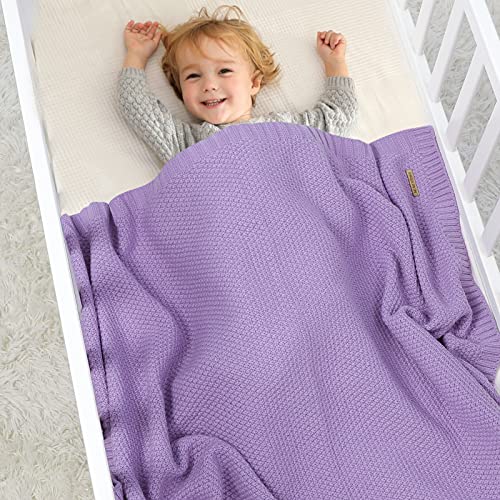 Mimixiong Coperta bimbo in maglia per bambini, 100 x 80 cm(Viola)