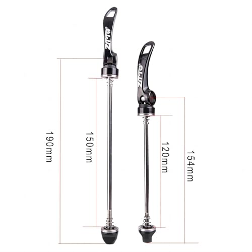 DIMENSIONE: lunghezza dell'asse anteriore: circa 115 mm, lunghezza dell'asse posteriore: circa 150mm. Utilizzo: Le sgancio rapidi bicicletta sono adatto MTB/Bici Strada/Mountain Bike/BMX.