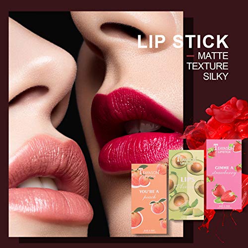 Mimore Rossetto 3 pezzi/set Sapore di frutta Opaco Rossetto Pastello Di lunga durata Impermeabile A prova di sbavature Fashion Full Portable Kit per il trucco dei rossetti (B)