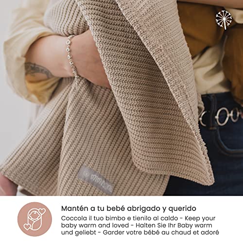 MIMUSELINA Copertina Lavorata a Maglia per Neonati e Bambini - Coperta a Maglia utile anche per Culla o Carrozzina - Copertina Neonato Cotone Morbida e Leggera ideale per Mezze Stagioni (Sabbia)