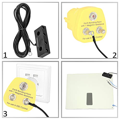 Minadax - Connettore centrale di messa a terra per più cavi di messa a terra, 3 metri, 4 prese di sicurezza BA (per spina a banana), montato lateralmente