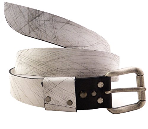 Colore Bianco e Nero, Fibbia Tonalità Argento Antico, Porta fibbia in struzzo Nero, Uomo. Set coordinato con cinturino Apple Watch Minardi Corvara (come da foto)