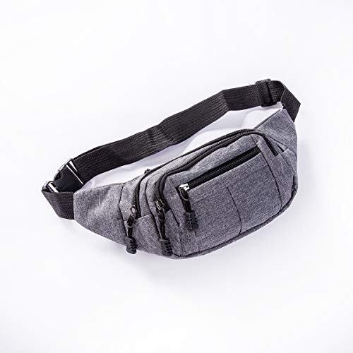 MINASAN Marsupio per uomo e donna impermeabile con più tasche, cinghia regolabile, marsupio casual per sport all'aria aperta, allenamento, viaggi, jogging grigio. Taglia unica