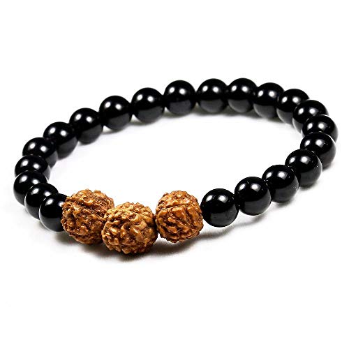 Minatore 8mm Perline di pietra di onice con bracciale Rudraksha Braccialetti da uomo per bracciali da donna Gioielli fatti a mano da uomo Braccialetto di fascino, 20 cm