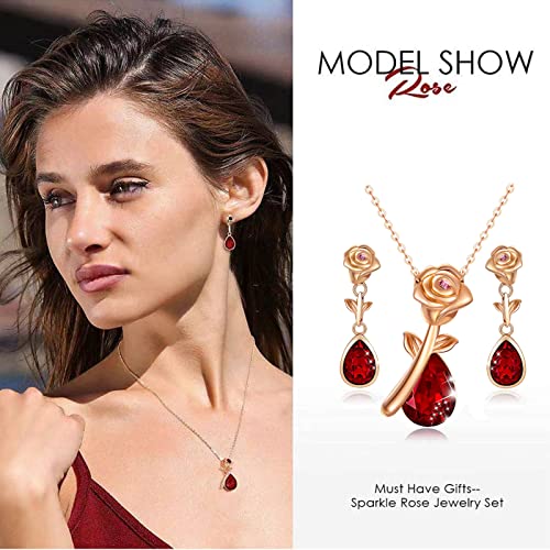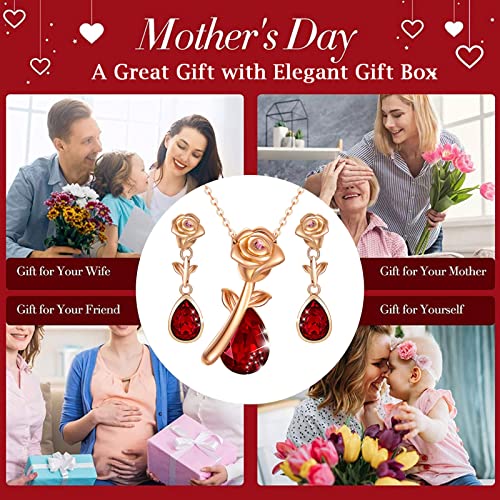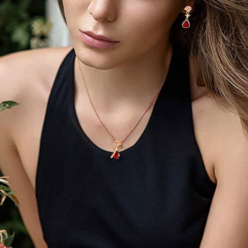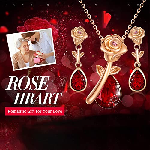 MINCHEDA Set di Gioielli da Donna con Rosa Orecchini e Collana a Goccia Regalo di Donna per San Valentine/Festa Della Mamma/Compleanno/Anniversario - Moglie/Fidanzata/Mamma