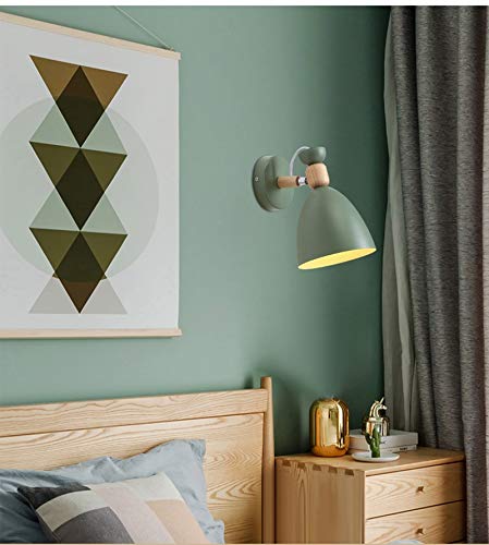 MINDONG HZH Macaron Lampada da parete Camera da letto creativa Lampada da comodino moderna semplice Personalità Lampada da parete in legno (Color: Green)
