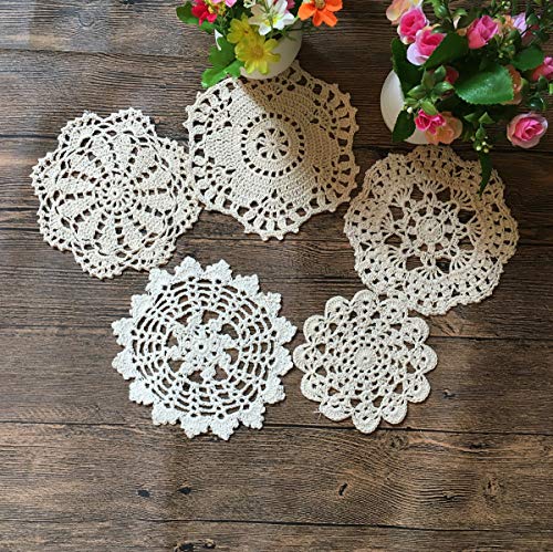 Confezione varietà: taglia 4,5 5 6 16,5 cm rotonda ciascuna, set di 10 pezzi, colore in beige, centrini in pizzo più assortiti per artigianato sono disponibili in altre dimensioni e disegni. Le dimensioni possono variare leggermente entro il 5-8% a causa del processo di uncinetto a mano