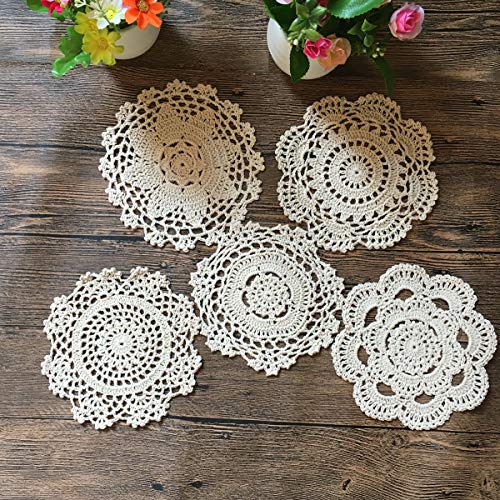 MINDPLUS Set di 10 Centrini all'Uncinetto a Mano Centrini in Pizzo all'Uncinetto in Cotone da Tovaglietta 15-17 cm Rotondi Beige Vintage Matrimonio Tea Party