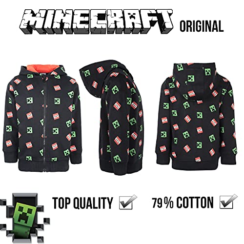 MINECRAFT - Felpe con Cappuccio da Ragazzo - Felpa con Cappuccio Nera con Zip - Felpa con Cappuccio Nera per Bambini Creeper - 5/6 Anni