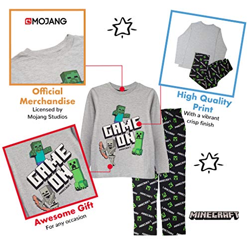 Minecraft Inizio Partita Ragazzi Lungo Pajamas Set Nero Heather Grey / 116 | PS4 PS5 Xbox Videogiocatore da Regalo, Scuola Maschile Pigiama, i Vestiti dei Bambini, Compleanno dei Capretti Idea Regalo