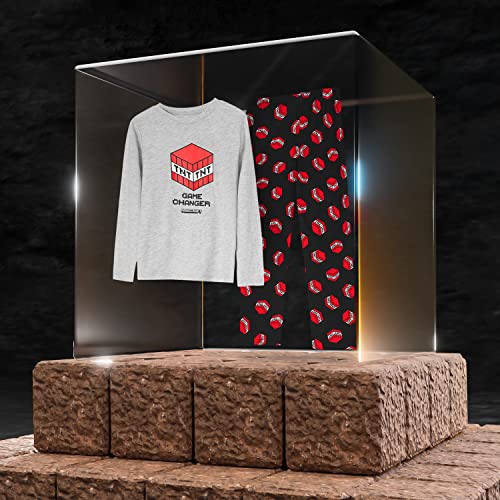 MINECRAFT Pigiama Bambino, Pigiami in Cotone con Magliette Creeper E TNT E Pantaloni Lunghi, Abbigliamento Bambino Merchandise Ufficiale 5-14 Anni, Idea Regalo (11-12 Anni, Grigio)