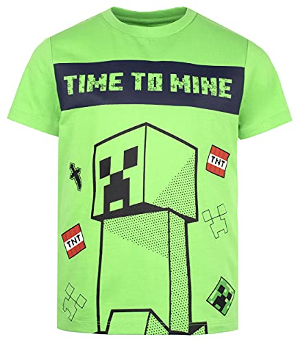 PIGIAMI UFFICIALI MINECRAFT: Questi pantaloni corti del pigiama e la maglietta di Minecraft sono un pigiama veramente confortevole per i ragazzi! I pantaloni verdi corti del pigiama sono comodi e belli. I pigiami di Minecraft per bambini sono ciò di cui i gamer hanno bisogno. Questa merce Minecraft è caratterizzata dall'iconico Creeper di Minecraft, le scatole di TNT e "Time to Mine" stampato sul set di Minecraft per bambini