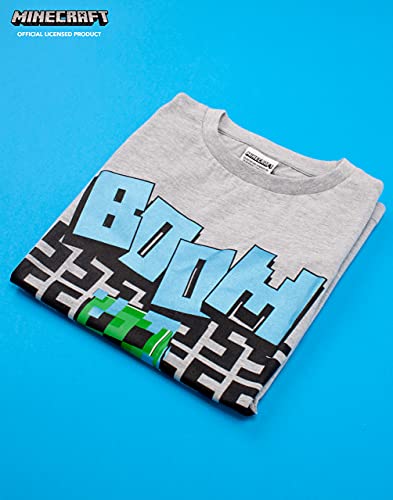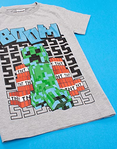 MINECRAFT T Shirt Boys Carbinato Creeper Manica Corta Grigio Merchandise 9-10 Anni