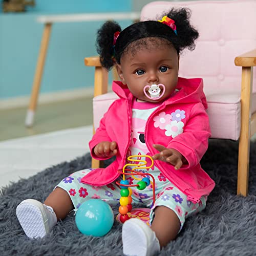 MineeQu 24 pollici Sue-Sue afroamericano Lifelike Dimensioni enormi Capelli ricci radicati Corpo coccoloso Bambole bambino Reborn in pelle nera Realistic Dolls Toddler ragazze appena nate Set regalo