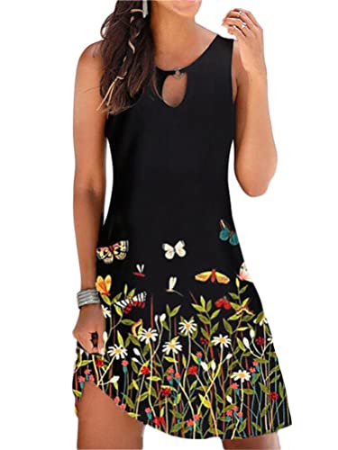 Minetom Abito Estivo Donna Vestito Stampa Fiore Senza Maniche Spiaggia Copricostume Abiti Casual Corto Prendisole Mini Abito C Fiore L