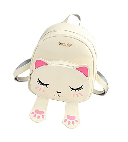 Minetom Borsa A Zainetto Donna PU Pelle Gatto Amorevole Spalla Zaini Femminili Scuola Superiore Zainetti Bag Ragazze Zaino Beige Taglia Unica