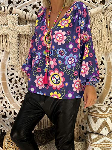 Minetom Camicetta Donna Elegante Manica Lunga Collo A V Moda Casual Maglietta Primavera Estate Stampa Floreale A Farfalla Top Loose T-Shirt Camicia A Blu 38
