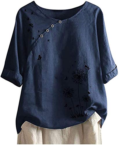 Minetom Camicia Donna Estate Elegante Bluse Manica Corta Camicie Casuale Camicetta T-Shirt Bottoni Magliette Blusa Tops A Navy XXL