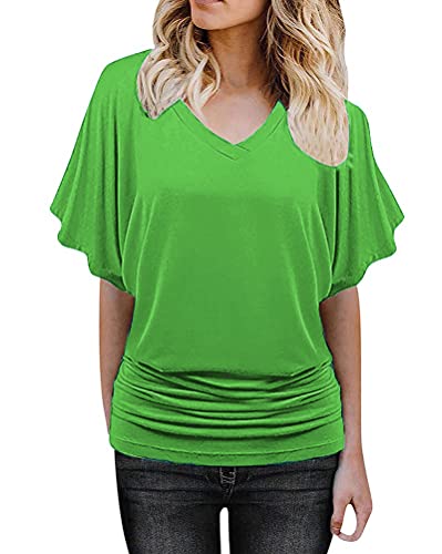 Minetom Camicia Donna Estiva Maniche Corte Camicetta Top in Chiffon Scollo V Manica Svasate Tinta Unita Blusa Classica A Verde L