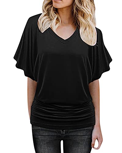 Minetom Camicia Donna Estiva Maniche Corte Camicetta Top in Chiffon Scollo V Manica Svasate Tinta Unita Blusa Classica A Nero 3XL