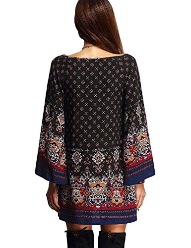 Minetom Donna Abito Barocco Boemo Manica Lunga Girocollo Cocktail Party Club Mini Vestito Nero IT 46