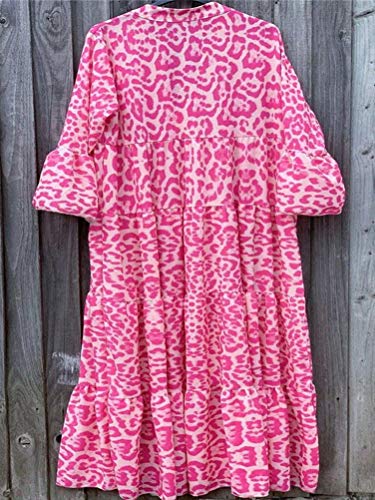 Minetom Donna Abito Manica a 3/4 Scollo a V Sciolto Estivo Vestito Lungo da Spiaggia Festa Taglie Forti Maxi Vestiti A Rosa 52