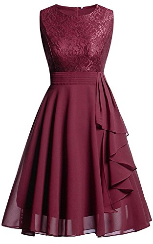 Minetom Donna Elegante Collo Rotonda Vestito Senza Maniche Festa Sera Abiti Chiffon Swing Abito da Cocktail Party Dress Borgogna IT 44