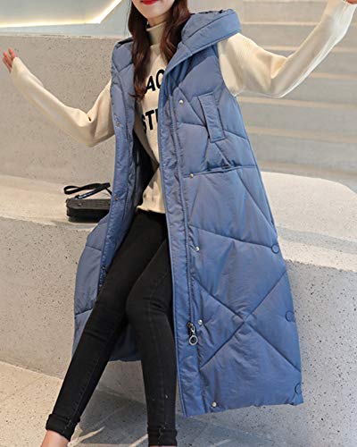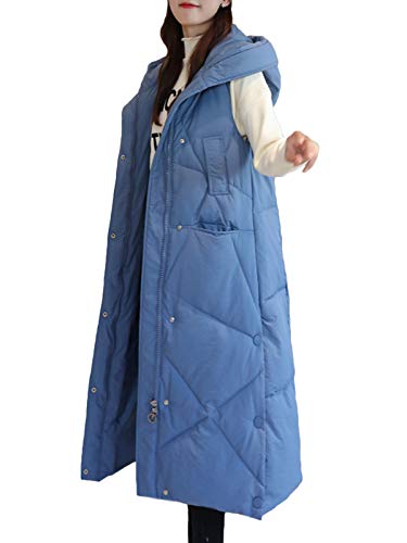 Minetom Donna Giacca Piumino con Cappuccio Giacconi Invernali con Cerniera Senza Maniche Imbottito Cappotto Giacche Cappotti Gilet Lungo A Blu 44
