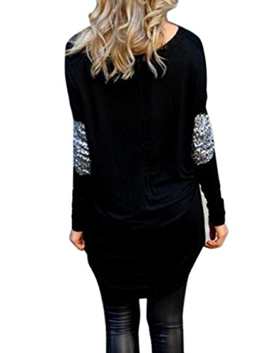 Minetom Donna Girocollo Manica Lunga Irregolare Camicia Camicetta Blouse Tops Glitter Patchwork ( Nero IT 44 )