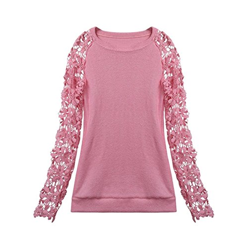 Minetom Donna Girocollo Pizzo Floral Manica Lunga Maglia Camicetta Blusa Camicia Hoodie Tops ( Pink IT 44 )