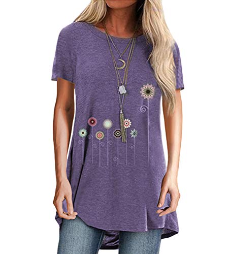 Minetom Donna Magliette Manica Corta Girocollo T-Shirt Basic Camicetta Estivo Camicia Stampa Floreale Loose Fit Casuale Top C Viola 38