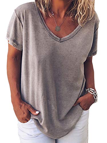 Minetom Donna Magliette Stampata a Maniche Corte Donna T-Shirt in Cotone Basic Camicetta Estivo Camicia Casuale Top B Grigio 42