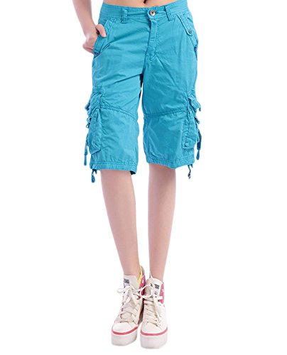 Design: design a metà vita, vestibilità casual, lunghezza al ginocchio, gambe dritte con coulisse. Tasche multiple comprese tasche laterali, tasche cargo posteriori e sulla gamba con bottoni automatici.