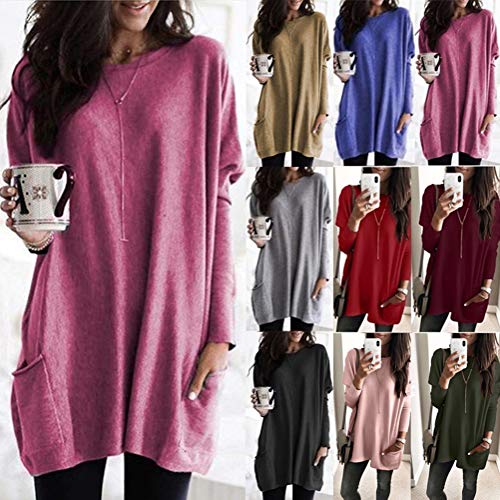 Minetom Donna Sciolto Manica Lunga Maglietta Tee Shirt Eleganti Tops Casual Camicetta Blusa Maglia Vestito Corto