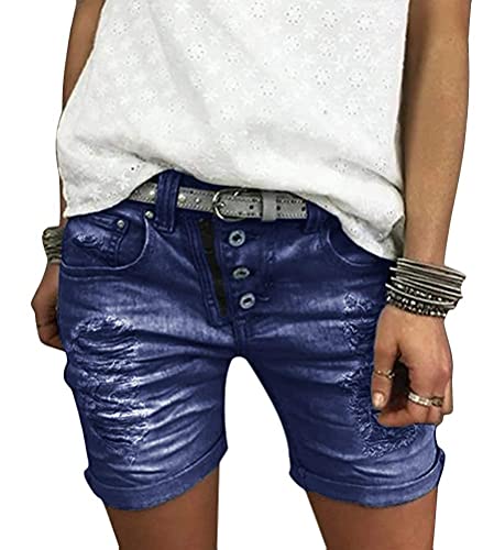 Minetom Donna Shorts Jeans Casual Estate Elastico in Vita Denim Pantaloncini Corti Vita Alta Ginocchio Bermuda Hot Pants con Tasche B Blu Large