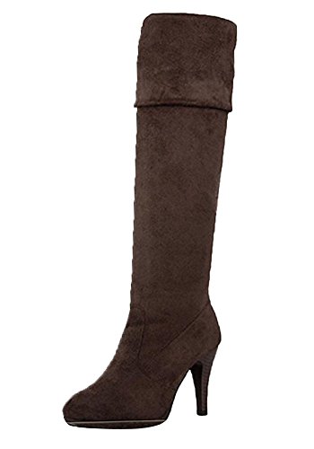 Minetom Donna sopra La Coscia al Ginocchio Scarpe Stretch Stivali Piattaforma Tacco Alto (Marrone EU 37)
