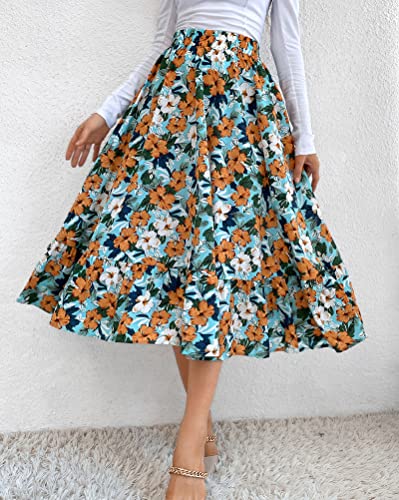 Minetom Donna Stampato Leopardo Vita Alta Midi Gonne A-Linea Vita Elastica Primavera Autunno Retro Lunga Swing Gonna A Verde XS