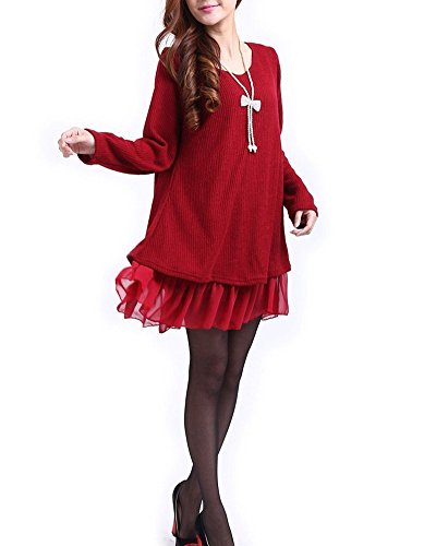 Minetom Donna Vestito Chiffon Manica Lunga Girocollo Allentata Abito in Maglia (Rosso IT 44)