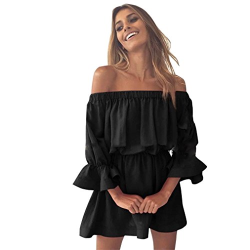 Minetom Donne Estivi Eleganti Camicia Vestito Corto Di Colore Solido Senza Spalline Maniche 3/4 Vestiti Di Parola Abito Da Moda Casual Partito Mini Dress Nero IT 42