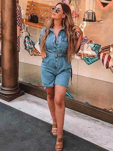 Minetom Donne Jeans Tutine Primavera Autunno Una Manica Lunga Tuta Denim Romper Jeans Salopette Denim Overall Jumpsuit Con Cintura F Blu XS