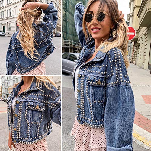 Minetom Donne Ricamo Moda Denim Giacca Manica Lunga Cappotto Casuale Capispalla Classico Giacche in Jeans Washed Tasche J Blu 44