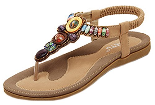 Minetom Donne Sandali Perline Abbellimento Boemo Stile Scarpe Spiaggia Sandali Estate Kaki 40