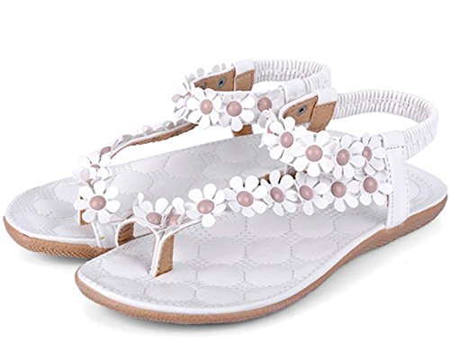Minetom Donne Simple Boemia Sandali Fiore Capo Turno Flip flop Sandali Piatti (Bianco EU 38)